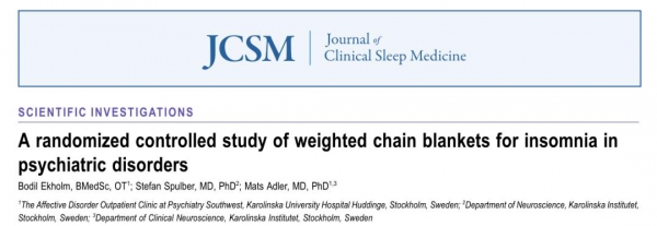 在本研究中,共纳入120名失眠超过2个月、合并有以下任一精神疾病包括:重度抑郁、双相情感障碍、焦虑症或多动症的患者。按照1:1的比例,将参与者随机分配到两组,一组盖重毛毯,6-8千克(当参与者觉得8千克太重可换为6千克的毛毯),一组盖轻毛毯重量1.5千克作为对照组。