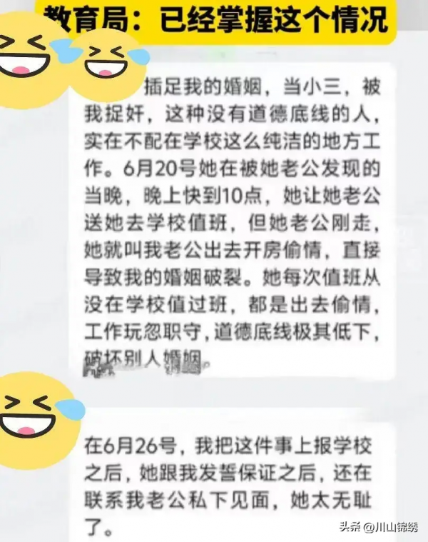 这次事件的曝光,源于曹某出轨对象的妻子,秦老师,据悉,秦老师同样是该校的老师,并且与曹某是关系亲密的闺蜜,谁能想到,原本应该是亲密无间的姐妹情,最终却因为一个男人的介入而彻底破裂
