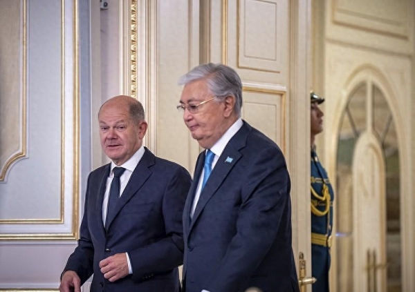 综合哈萨克斯坦媒体《阿斯塔纳时报》、路透社等16日报道,当地时间周一,哈萨克斯坦总统托卡耶夫在阿斯塔纳与到访的德国总理朔尔茨举行会谈,这是德国政府首脑近14年来首次访问哈萨克斯坦。上周日开始,朔尔茨携庞大商业代表团展开了为期三天的中亚五国之行,旨在经济和能源、气候和环境以及区域合作等领域建立更紧密关系。