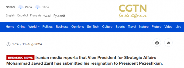 【伊朗总统战略事务副手扎里夫辞职】