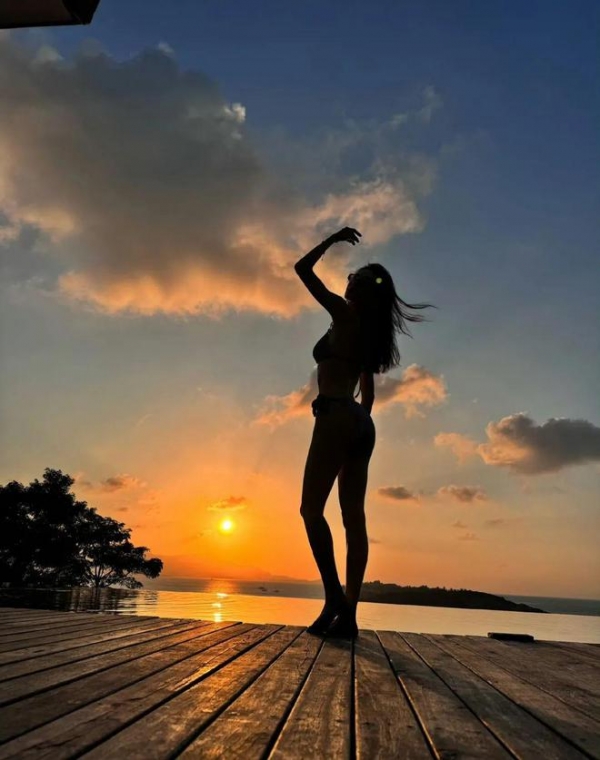 近日,钟楚曦在社交媒体上晒出了一组在泰国海边拍摄的比基尼泳装照,照片中她身着简约风格的紫色泳装,展现出了健康自信的美。