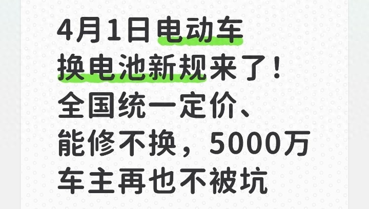 定了!4月1日电动车换电池新规落地!5000万车主省钱指南(真实版)