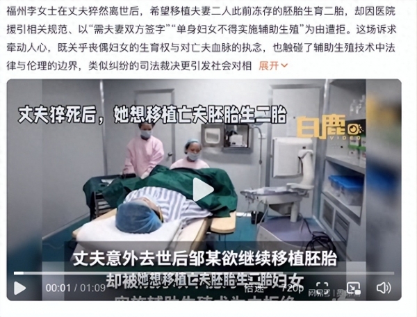福州李女士为了给亡夫留后,想移植夫妻俩当年冷冻的胚胎,被医院断然拒绝,于是愤怒的把医院告上法庭!