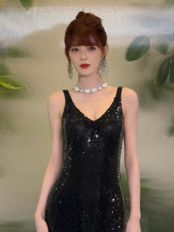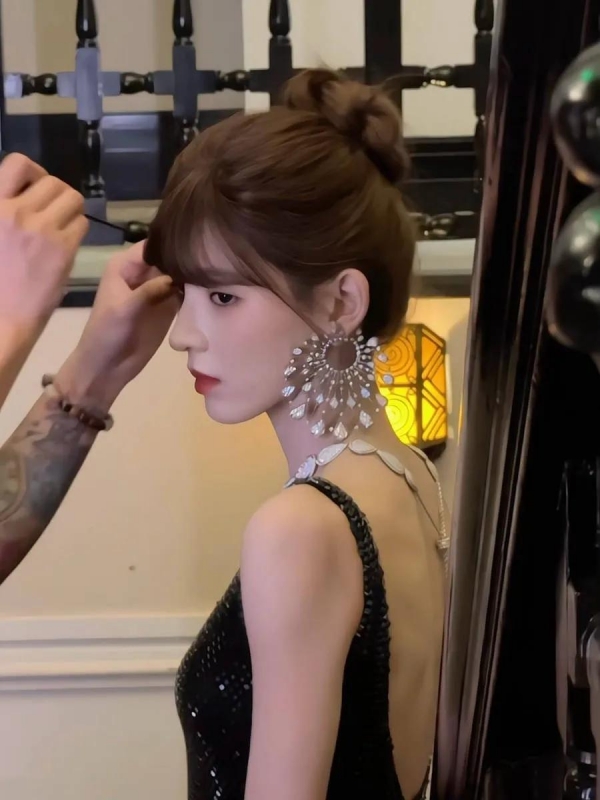细节控狂喜!亮片裙穿出"千金感"别看裙子简单,细节处处是心机。亮片颗粒又小又密,柔光下面一点都不扎眼,走动时候微微泛光,衬得她168cm的个子更显修长。搭配的超大耳饰也是点睛之笔,流线型设计垂到肩膀,一晃一动之间整个人气质拉满,连侧颜的鼻梁线条都被衬得更立体了。生图里她站在角落补妆,腰腹一点赘肉都没有,站姿笔直得像教科书,果然女明星的自我修养是刻进DNA里的!