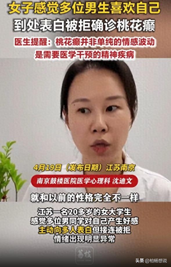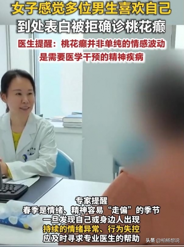 女大学生感觉多位男生喜欢自己,到处表白被拒确诊桃花癫,医生:并非单纯的情感波动,是需要医学干预的精神疾病。
