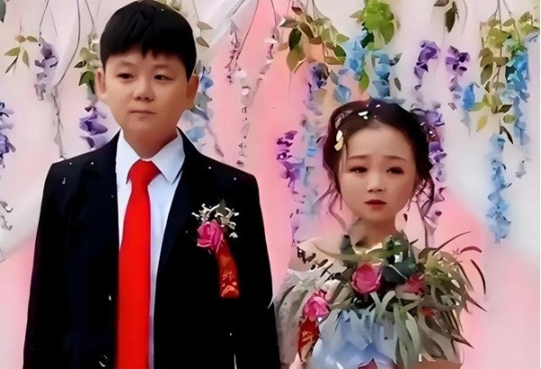 本来这是一条很正常的新婚视频,但不正常的是,视频中的两个新人看起来只有十三四岁,还是未成年!