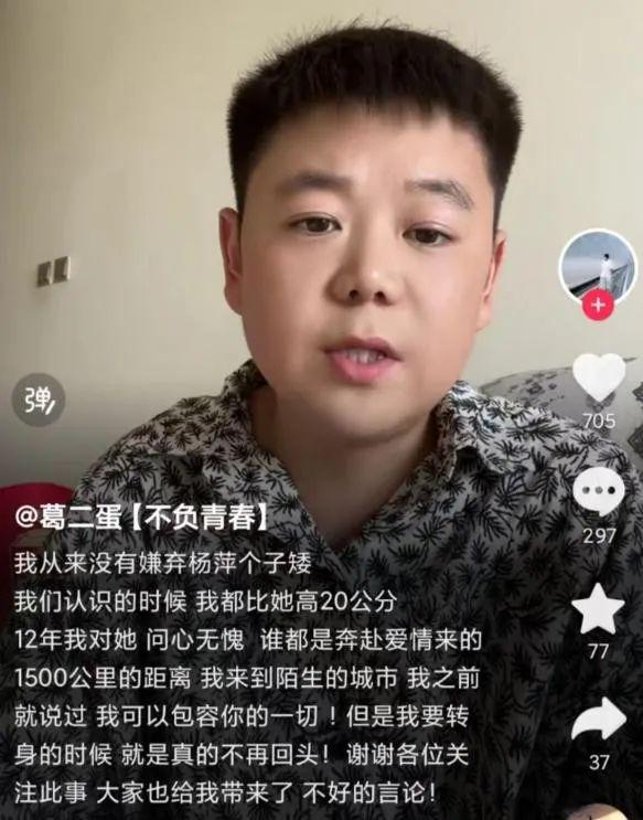 但男方发视频称是自己忍受不了杨萍的臭脾气,两个人关系出现了问题才离的婚。
