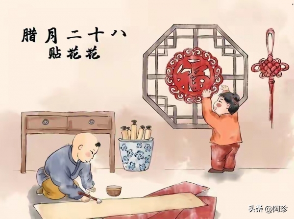 "廿八贴红花",春联、门神、福字、窗花一应俱全。