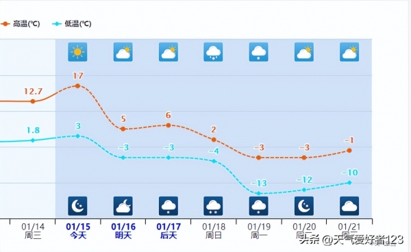 比如济南,明天气温开始下滑,19日降雪过后,最高气温甚至持续多日0℃线以下。