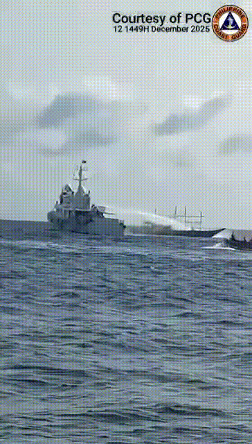 12月12日,菲律宾海警组织大量船只在仙宾礁附近海域挑衅,菲海警出动4403、4411号巡逻艇,护送20多艘渔船非法侵闯,理由是出来"捕鱼"。中国海警提前预警,对试图侵闯的菲方船只采取喊话警告、外逼驱离等必要管控措施,菲律宾船只不听劝只能用水炮驱离。作为常态执行很正常,但菲律宾向来恶人先告状,事后炒作遭到中国海警水炮袭击,造成船只损坏人员伤亡。