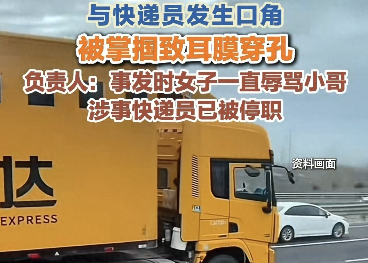 近日,一女子发文称自己要求快递员上门,双方发生了口角争执女子被掌嘴致耳膜穿孔,说的自己很惨。