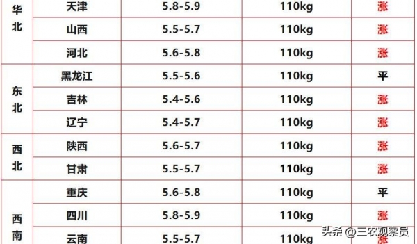 最后给到明日(12月11日)参考价,华东山东上调0.1元每斤,出栏参考5.5到5.8元每斤,华中河南上调0.1元每斤,出栏参考5.5到5.7元每斤,华南广东保持平稳,出栏参考6.0到6.3元每斤,华北河北上调0.1元每斤,出栏参考5.6到5.8元每斤,东北吉林上调0.1元每斤,出栏参考5.4到5.6元每斤,数据摆在这,怎么走,明天见分晓?