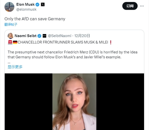 这一认定随即引发特朗普阵营强烈反弹:副总统万斯、国务卿鲁比奥接连发声,批评德国存在"暴政";德国外交部则强硬反驳称"这就是民主"。