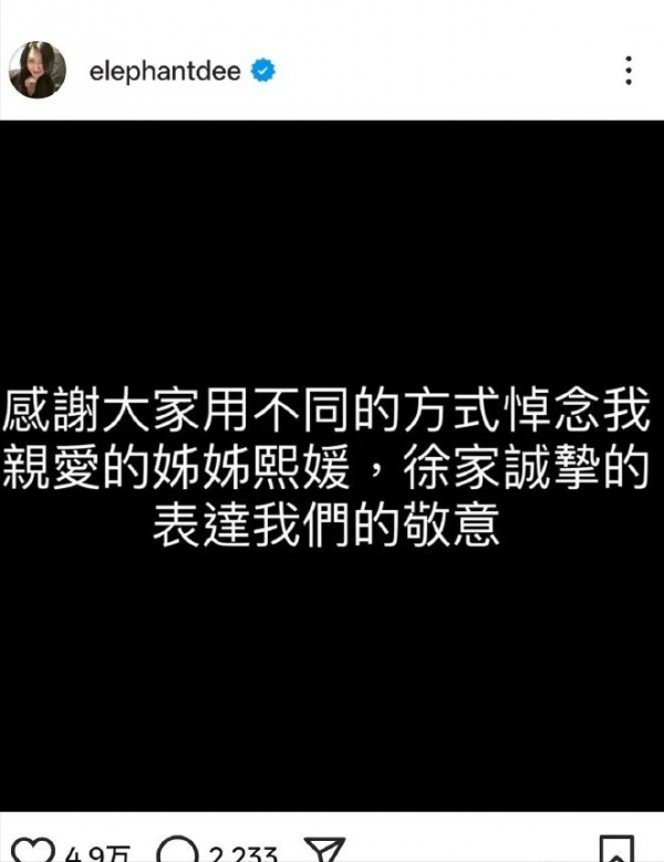 12月15日,距离大S离开我们已经14天了,S妈再次更新了自己的社交平台,并且将换了新头像,可见S白发人送黑发人的"悲痛",除此之外,大S的妹妹小S也更新了社交平台怀念大S,并感谢大家用不同的方式追悼大S。