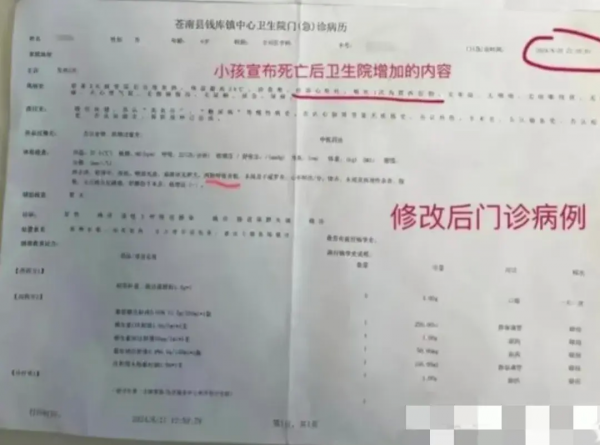 其他基本信息没变,为何独独时间和检查结果变了,如果男孩的突然离世与卫生院没有任何关系,他们完全清者自清,只要配合男孩家人与相关人员的检查就行了,毕竟人命关天,不想着弄清原因,却想着再打一份病例单,其中种种操作,都加重了男孩家人的疑虑。而且卫生院的负责人当着其他领导的面向家属保证病历真实可靠,如果不是男孩父亲仔细看,还真看不出有什么不对,毕竟除了时间,就改了一个字。