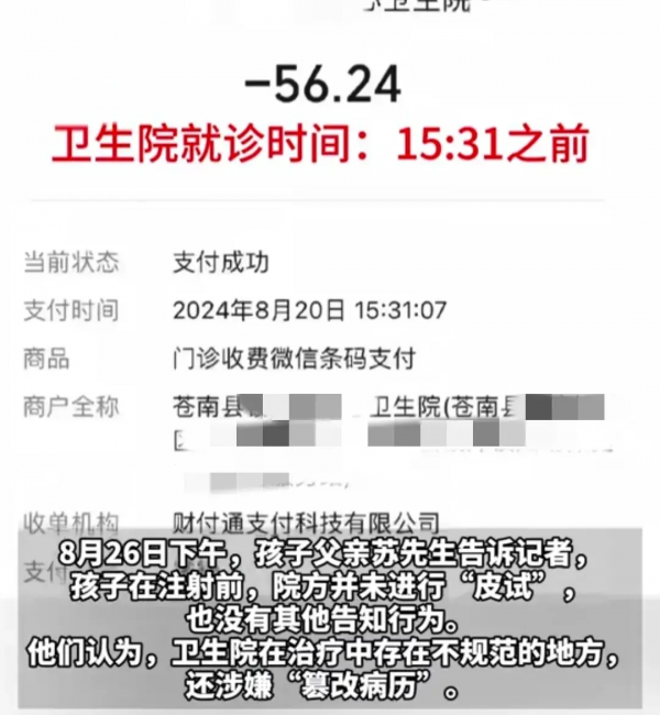 再说到输液前,男孩的父亲回忆输液前的场景,称卫生院的护士并没有给男孩做"皮试",一般对药物过敏的很少,但不怕一万就怕万一,别说是卫生院了,就是随便一个小诊所,输液前都会给患者在手腕做个皮试,毕竟这么几大瓶药水打入,肯定要提前做个过敏测试,一切无碍后才会继续治疗,针对这一行为,男孩父亲指责卫生院是否操作不规范。