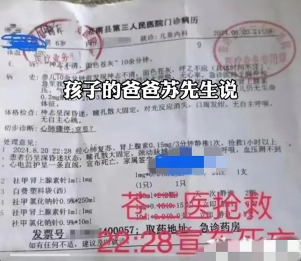 还有输液过程中,男孩感觉身体严重不舒服,全身瘫软没有力气,孩子的爷爷奶奶急忙将情况报告给了卫生院的医护人员,但被医护人员告知"没事的",因为护士都说没事了,所以这一插曲并没有引起任何重视,直到输液结束,孩子回到家,不适的情况不减反增,家长才慌了,急忙送往更大的医院,却已经为时已晚,如果早在当时说不舒服时就重视,情况会不会与现在截然相反。
