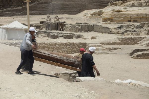 阿穆:埃及迄今为止发现的最早的人形棺椁是在第四王朝,距今大概5000多年,也就是造金字塔的年代。这是我们挖掘找到的第一个,不代表它就是最早的,可能地下还有更古老的没有被发现。