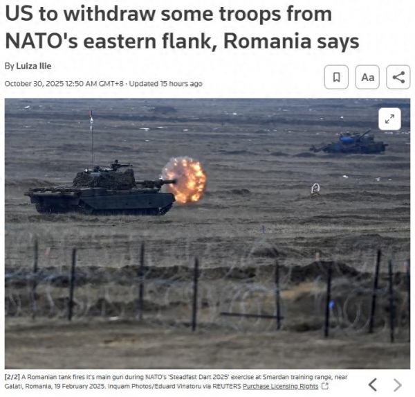 尽管近些年来欧洲方面在不断地加强它的军事力量,而且做出了大规模投资规划。但显然,短期内欧洲国家,尤其是处于北约东翼的国家仍然高度依赖美国提供的所谓"安全保障"。像罗马尼亚,长期以来在军事力量、武器装备上都严重依赖美国,所以一旦美国方面出于它所谓"全球战略目标"的考虑,要在欧洲尤其是北约东翼进行军事调整时,这些欧洲国家的焦虑感是非常真实的。