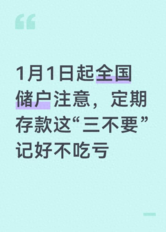2026年一开年,银行存钱的规矩就迎来了不少新变化。对于全国老百姓来说,存钱从来都不是把钱往银行一放就完事的简单事,尤其是2月1日起正式落地的存款新政,看似复杂其实核心都是为了让大家存钱更安全、更灵活,还能合理多赚利息。今天就用最实在的大白话,把定期存款的"三不要"给大伙讲透彻,再补充几个最新的存钱技巧,记牢这些,辛苦攒下的钱才能不白忙活,稳稳拿到该得的收益。