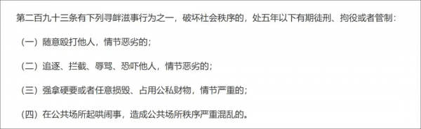 去找了《刑法》的相关条例,其中第二百九十三条规定