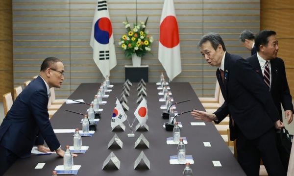 8月23日,日本东京。韩国国家安保室长魏圣洛与日本驻韩大使水岛浩一在首相官邸举行会谈, IC Photo