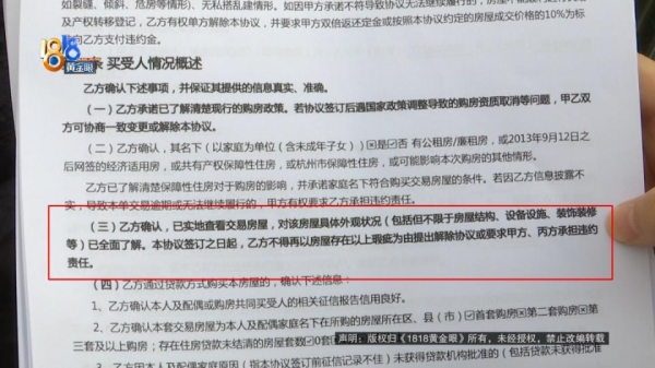 《房屋买卖定金协议》里写着乙方也就是卞女士,"确认已实地查看交易房屋,对该房屋具体外观状况已全面了解,自协议签订之日起,乙方不得再以房屋存在以上瑕疵为由,提出解除协议,或要求甲方、丙方承担违约责任"。