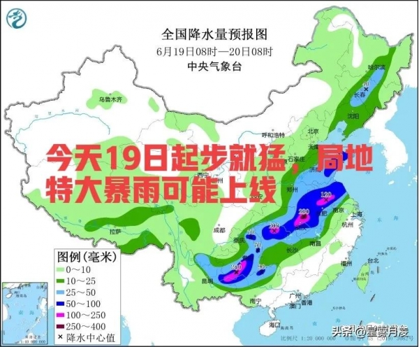 今天19日起步就猛,局地特大暴雨可能上线