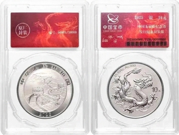 去年5月发行的2025版中国龙银质纪念币封装版,行情直接水涨船高