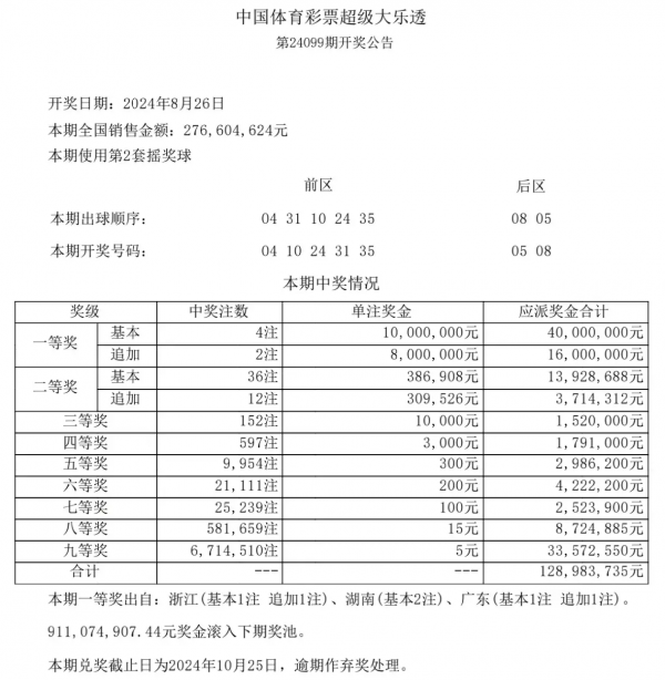 令人振奋的是,本期大乐透一等奖全国共开出4注,每注奖金高达1000万元!其中,湖南的幸运彩友不仅赢得了基本一等奖的1000万元,还因为采取了追加投注方式,额外获得了800万元的追加奖金,总奖金达到2000万元!另外,浙江和广东也分别有1注基本一等奖和1注追加一等奖。