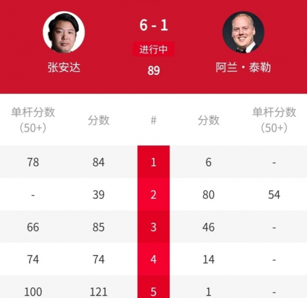 资格赛第三轮,张安达以6-1轻松战胜阿伦-泰勒挺进晋级轮。而"泰国一哥"塔猜亚在第三轮的对手是罗比-威廉姆斯。这场比赛,塔猜亚打得极为霸气,他轰出一杆破百(129分)和四杆50+(84分、67分、89分、50分),总比分6-1获胜晋级。