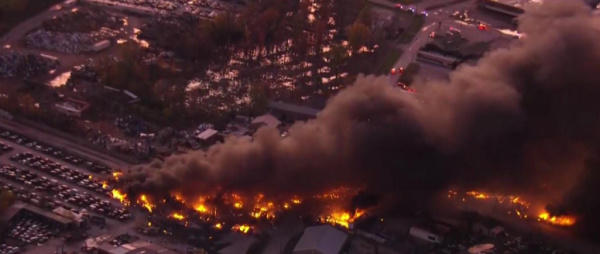 现场画面显示,该机场南部燃起大火,并升起滚滚浓烟。
