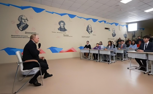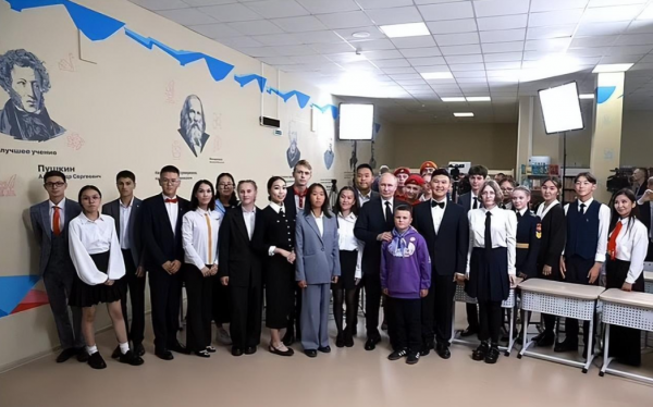 同一天,普京去蒙古之前,还前往了俄罗斯图瓦共和国首府克孜勒(南部与蒙古国接壤)的一所学校,为孩子们上了新学期开学的第一课。