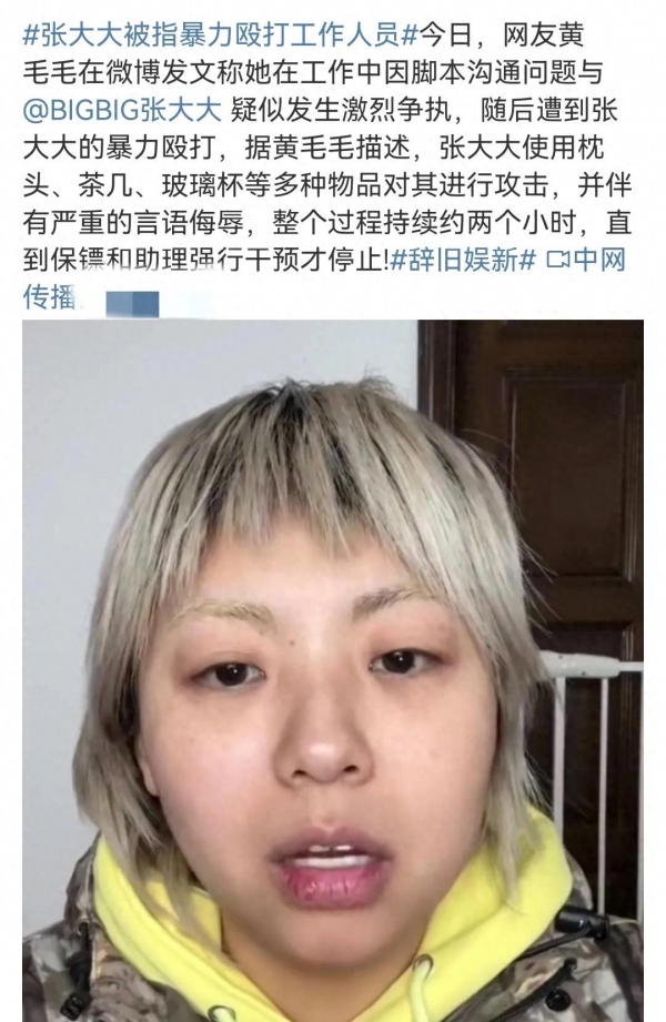网传因为脚本沟通不顺利,张大大对女助手疯狂殴打辱骂。