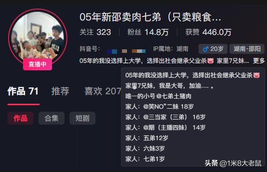 没想到,吐槽父母生了7个娃还打算再要第8个孩子的男生竟是一名小网红。