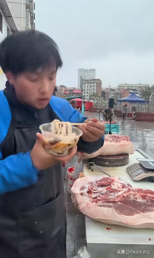 由于工作性质和家庭原因,为此男生给自己取了一个很贴切的网名"卖肉七弟"。
