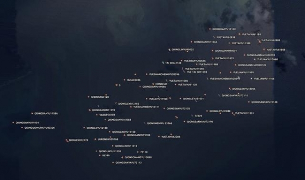11月25日拍摄的卫星图像显示,在中业岛附近似乎有一支来自中国海事民兵的捕鱼船队