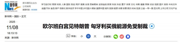 11月8日,匈牙利总理欧尔班访问美国,在白宫与特朗普碰面,进一步商讨俄乌局势。
