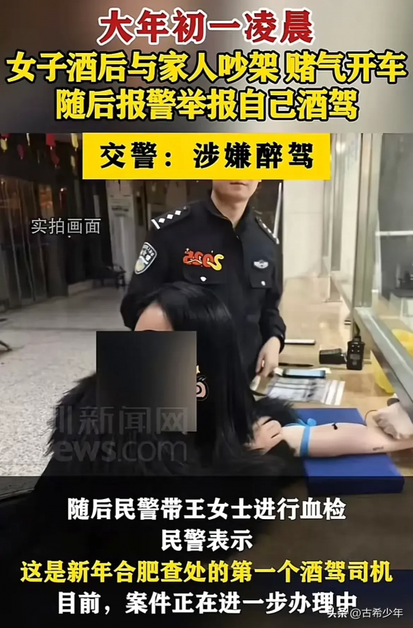安徽合肥的王女士在除夕夜,喝了一些白酒。后来与家人因为琐事发生争吵,一气之下,开起车子就上路了。