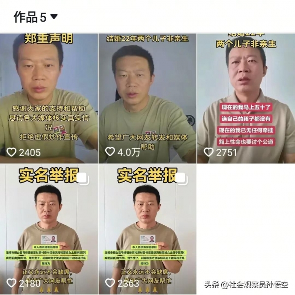 事件当事人是来自山东淄博市桓台县马桥镇姜家村男子姜洪涛。他连发5个视频愤怒控诉,前妻及儿子对他造成的种种伤害。