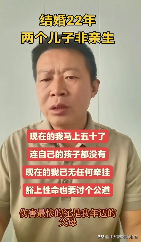 山东淄博一男子与前妻有着22年的婚姻,近日,才发现两个儿子都不是亲生的。两个儿子又分别是前妻与两个男人生的。一个是邻村村支书的,一个是男子堂哥的,男子堂哥是他们村原村支书。