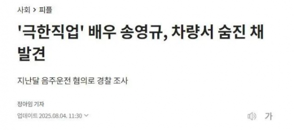上个月7月25日,韩国新闻报道称在宋英奎因涉嫌酒驾将会被移交地方监察厅。