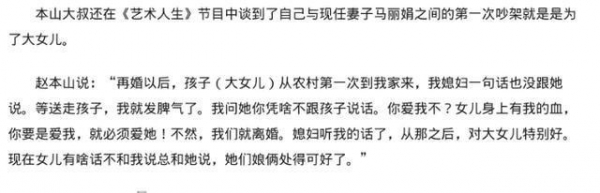 赵本山再婚后第一年春节,把赵玉芳接到家中,马丽娟没有和孩子说话,这引发了赵本山和马丽娟第一次吵架。