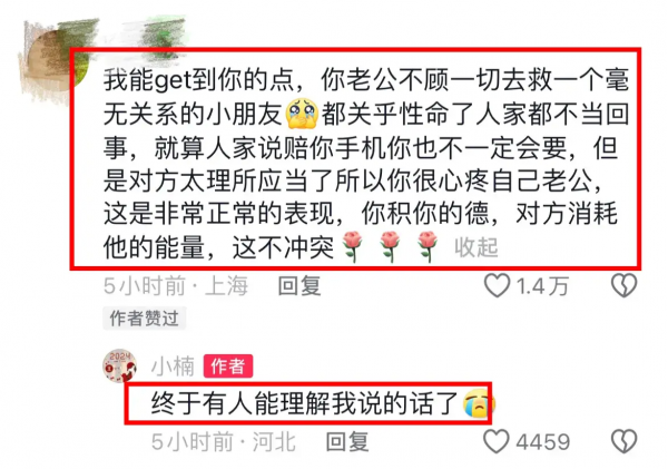 但是女子觉得,再怎么说自己丈夫是解救了一名毫不相干的小孩,虽然是自愿,但是自己丈夫因救人手机又被毁不该如此被忽视,并不是非要人赔,但是不该不被认可。