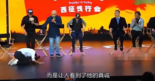 发布会上,宝强心里一堆感谢的话,到嘴边又不知道咋说,干脆直接给几位前辈跪下了。