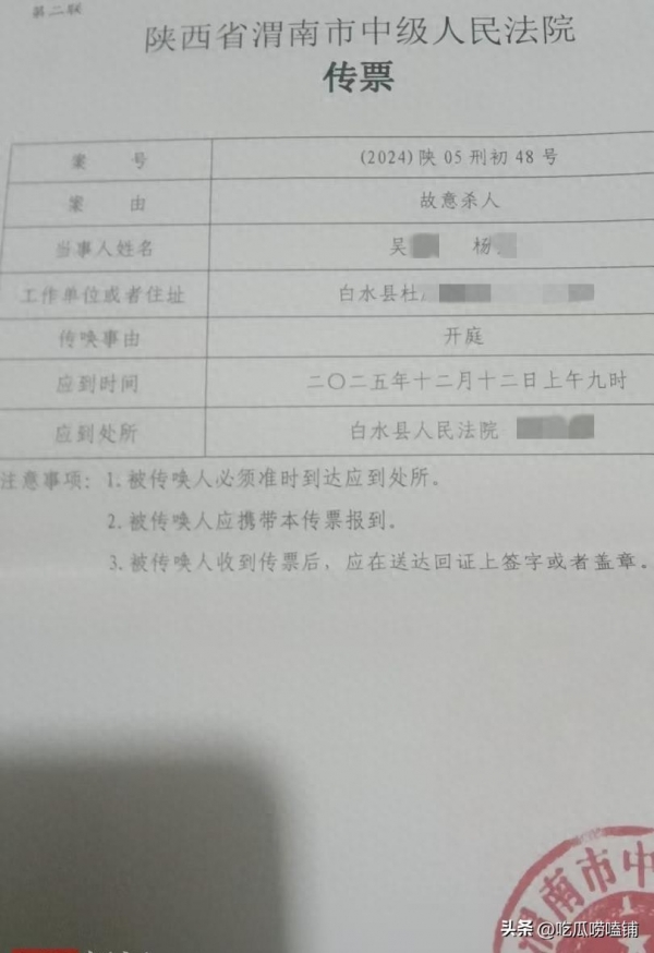 今年2月份,陕西渭南白水县法院开庭审理了一桩命案。被告李某春被指控在面馆内向妻子吴某莉灌入滚烫面汤,导致对方呛死。案件因情况复杂,先后三次向更高法院申请延期,最近一次定在12月12号公开宣判。受害人家属的弟弟吴先生表示,法院最近几天上门送了传票,并称男方始终没道歉。