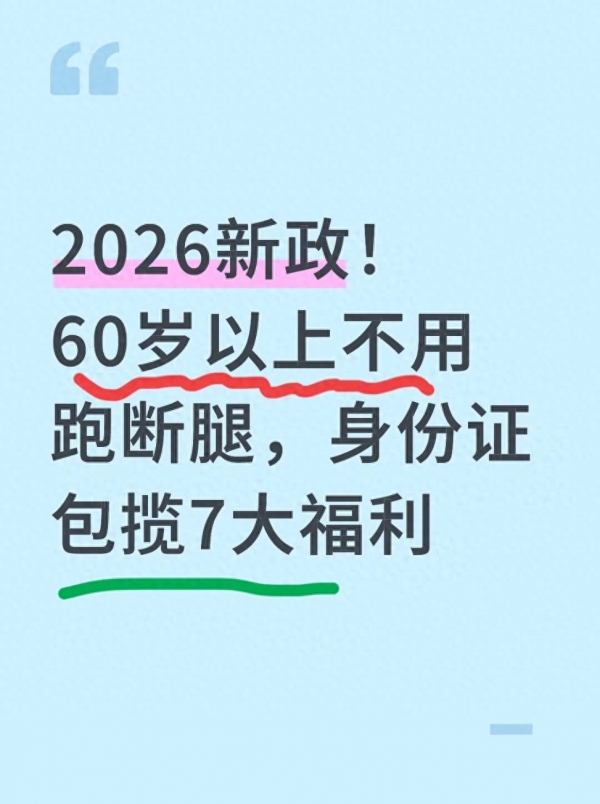 但从2026年1月1日起,这些糟心事要彻底成为过去式了。云南、福建、湖南等多地已陆续官宣新政,全国范围内正全面推进"身份证替代老年优待证"改革,60岁及以上老人不用再强制办理纸质老年优待证,凭本人居民身份证就能享受所有法定老年优待,真正实现"一证在手,福利全有"。作为每天和老人打交道的基层工作人员,亲眼见证这项政策从试点到推广,真切感受到这才是实实在在的民生便利。