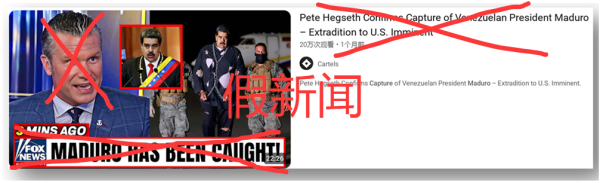 标题直译:"赫格塞斯确认委内瑞拉总统马杜罗被俘获--即将引渡美国"(假新闻)