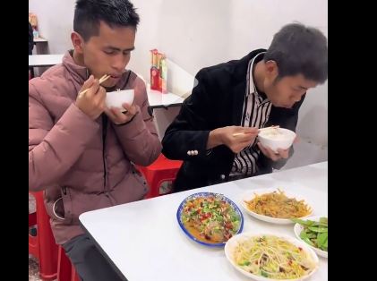 网友:看他吃饭,吃菜都啥不得吃,可以看出来家里条件不好,在当今社会,一个小伙出来打工把80%工资给家里,自己留下20%这种年青人已不多了!!