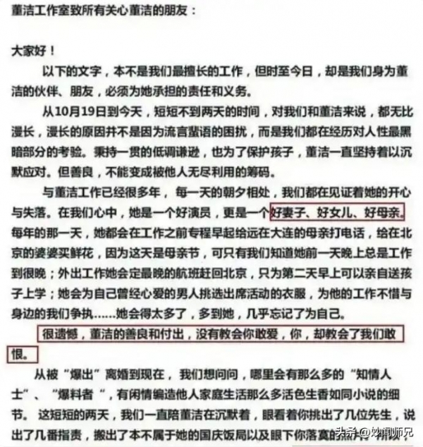 反正董洁这次访谈,争议比理解多得多。大家不是不能原谅她犯错,而是不能接受她避重就轻。你说"任性不成熟",可当年发声明诬陷前夫,附上假证据,动用经纪人团队系统性抹黑潘粤明--这叫任性?这叫蓄意伤害。
